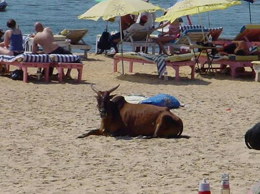 Diferenças entre uma praia na Índia e uma na Grécia