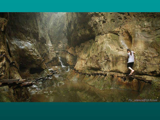 O Qixian canhão com degraus de metal e passarelas estreitas habilitados para acessar determinadas áreas: